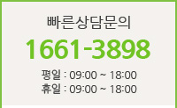 대표번호: 1661-3898 | 상담가능시간 : 09:00 ~ 18:00